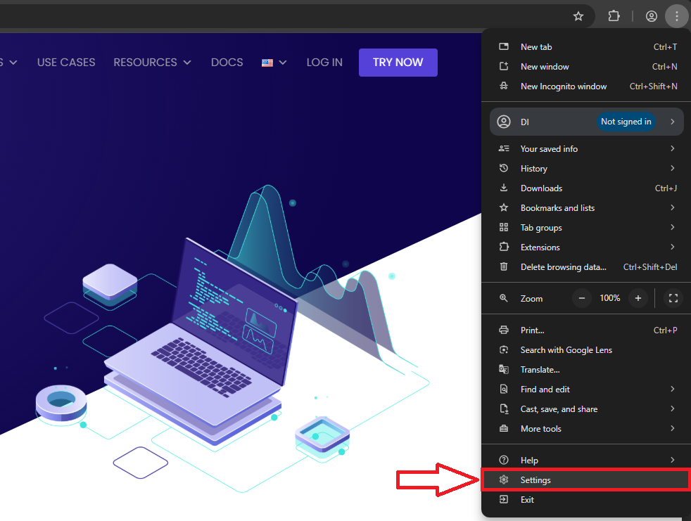 To get started with a browser, we’ll use Google Chrome as an example. Chrome relies on your computer’s system proxy settings, which makes it easy to route traffic through your DataImpulse proxy while the VPN is active.