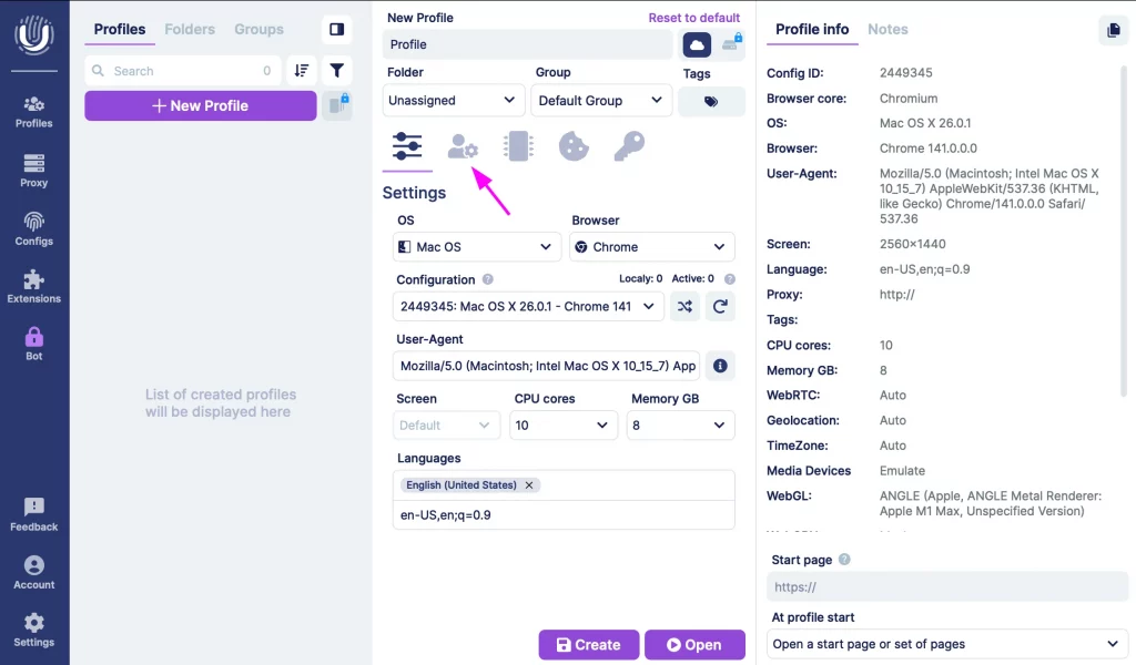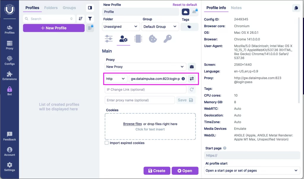 9. Click ‘Open’ button to start using the anti-detect browser with proxies.