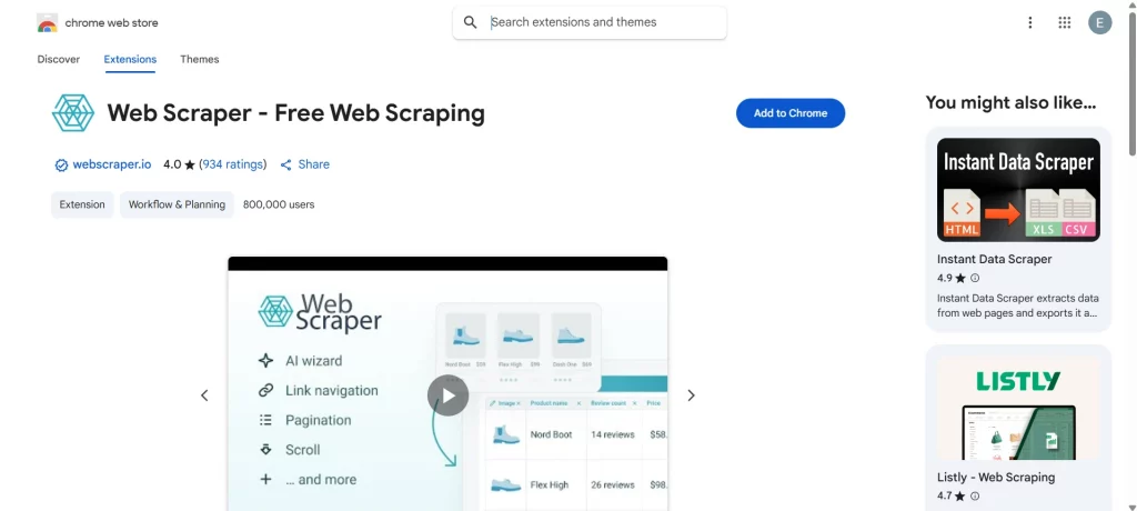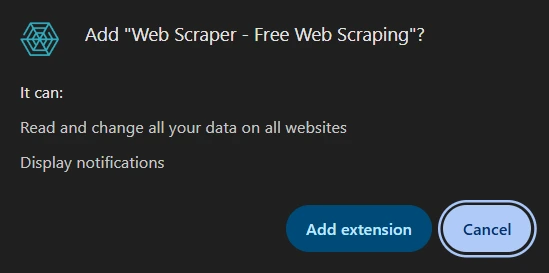 - Install the Web Scraper extension from the official Chrome Web Store. If you go to the extension’s official web page and click Install Chrome plugin, you will be redirected to the Chrome Web Store anyway. A confirmation will appear afterwards.