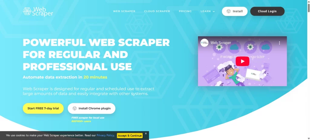 Web Scraper Extension has two versions – a free browser plugin and a paid cloud version with several plans, which you can try for 7 days for free. This tutorial is devoted to the free extension. Its advantages include:
