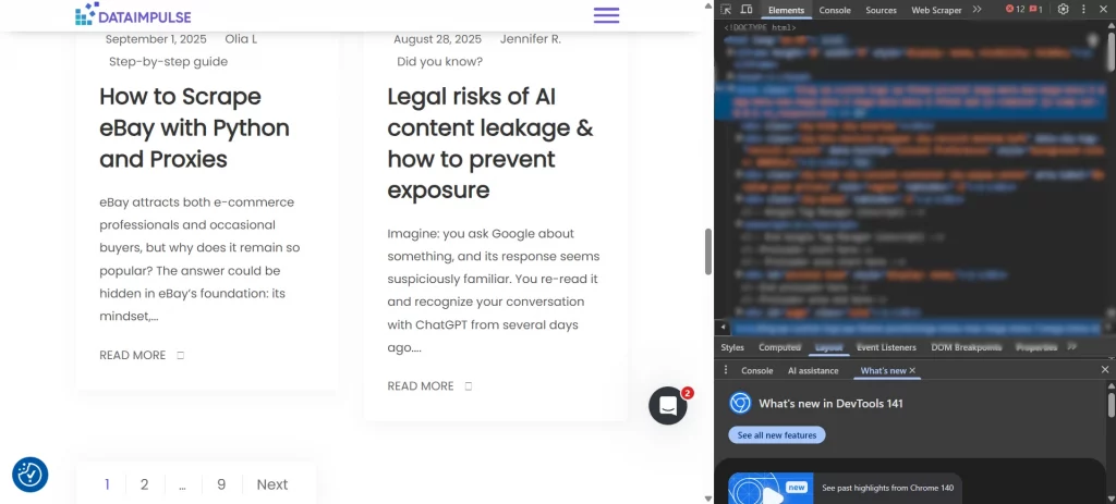 - Open a website you want to scrape. In our tutorial, we are using DataImpulse’s blog as an example.