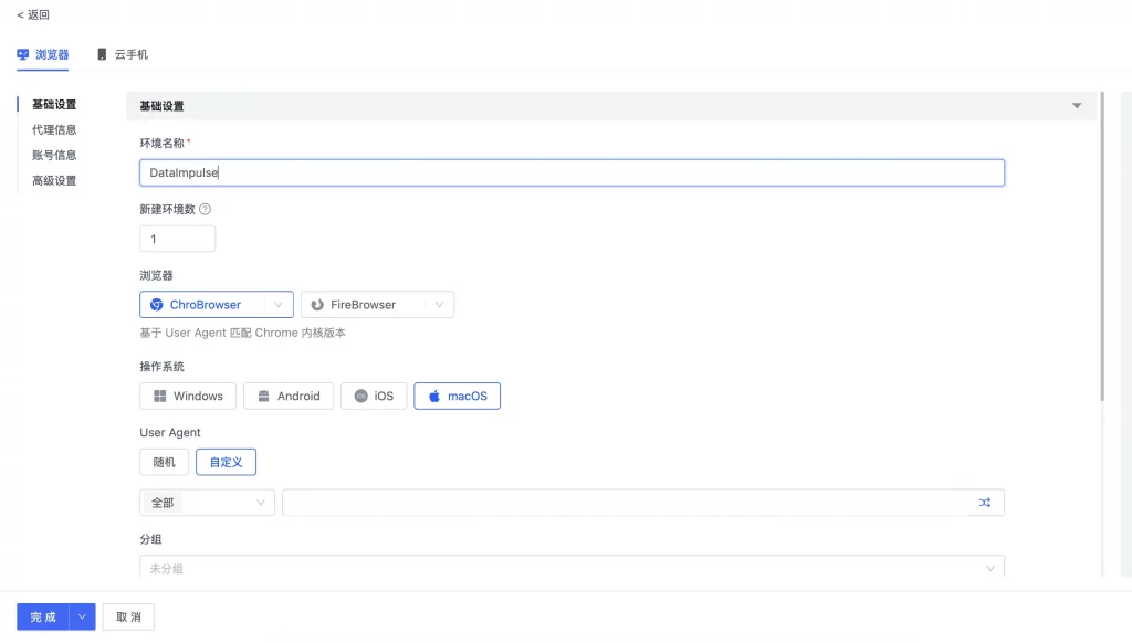 5. After that, you’ll be redirected to configure the settings for the freshly-created profile. You can name it, choose browser version (ChroBrowser/FireBrowser), OS, and user agent.