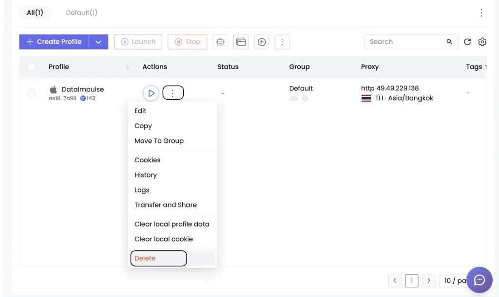 9. To disable the profile, click the three dots near the Play button and hit Delete.