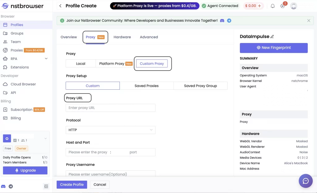 How to connect DataImpulse Proxies to Nstbrowser: quick steps