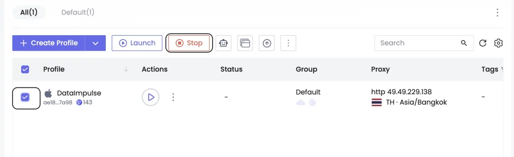 10. If you just want to stop it, then tick the box right near the Profile name and click Stop.