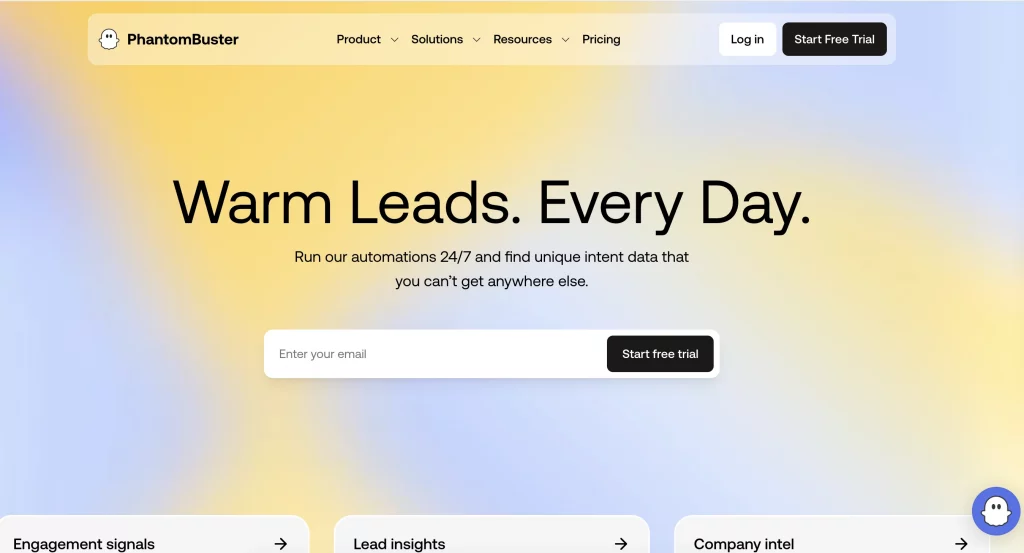 2. Then, visit the PhantomBuster website. We’re using macOS (M1-series) in this tutorial. Click ‘Start Free Trial’. Enter your email, create a strong password, and click ‘Continue’.